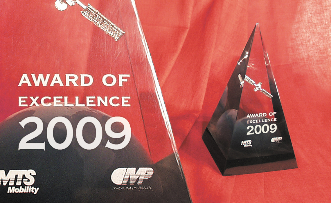 This elegant award celebrates the achievements of MTS Mobility staff. The pyramid shape illustrates satellite signal coverage while symbolizing the company's enduring legacy as a communications leader.