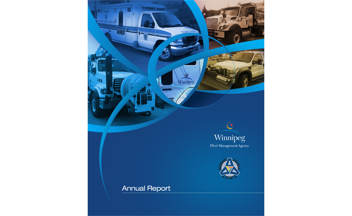 WFMA's annual report incorporates the city's corporate colours to distinguish each of its services while showing the interconnectedness of the department.